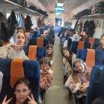 Nasza podróż z Polski rozpoczęła się bardzo wcześnie, gdyż przed nami rozciągała się wizja dłuuugiej podróży pociągiem. Na szczęście nasz pociąg nadjechał o czasie, rodzice uściskali swoje pociechy życząc im powodzenia oraz cudownej podróży i wyruszyliśmy- Witaj przygodo! Podróż przebiegała fantastycznie, a dziewczynki zaopatrzone w książki, mini gry i łamigłówki nie narzekały na trudy podróży…..do czasu. Pech chciał, że podczas końcowego odcinka naszej trasy zepsuła się lokomotywa. Oczekiwanie na nową trwało prawie godzinę, ale na szczęście ten czas osłodziła nam darmowe przekąski 😉